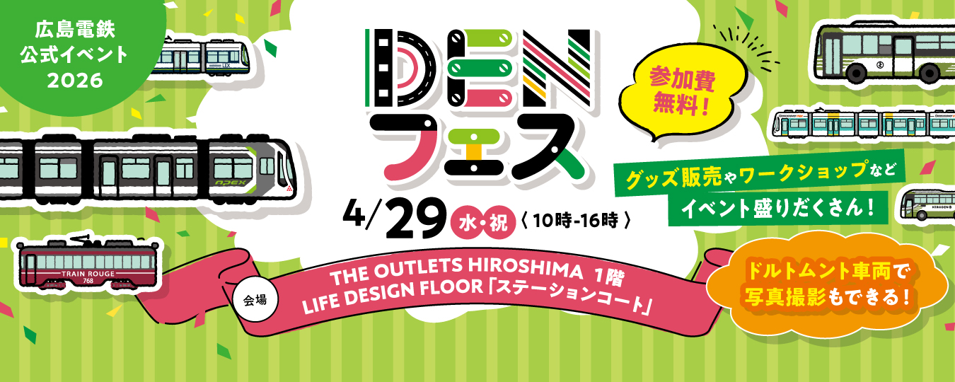 ひろでんの電車やバスが大好きなお子さまに楽しんでいただけるよう、さまざまなコンテンツを用意しました。ぜひ、ご家族一緒にお楽しみください!