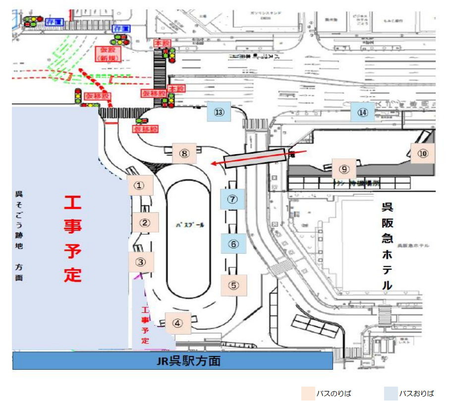 空港方面の場合は乗車専用、呉方面の場合は降車専用